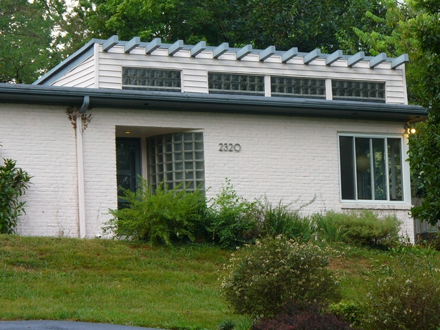 Date Constructed: Unknown at this time A very light-colored pink residential home near Cherokee Park. Note the Art-Moderne/Deco design elements of the corner windows and glass blocks, particularly the curved glass block entryway. Photos by Jim L. Patterson - copyright 2012.